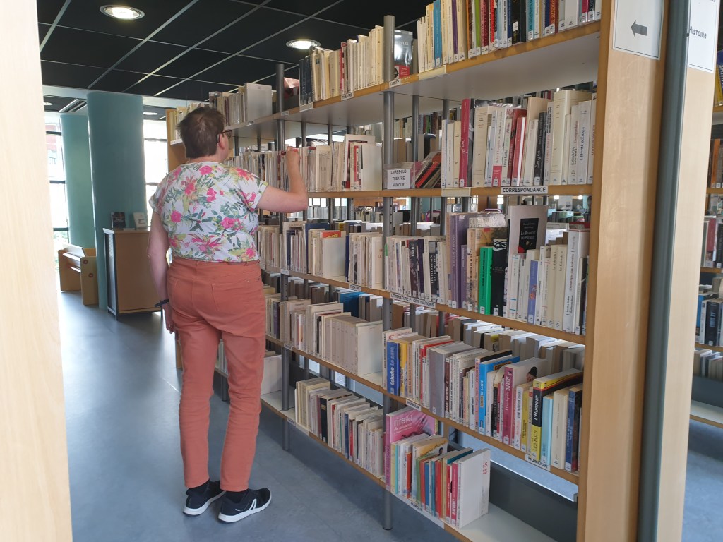 La médiathèque permet aux personnes participantes d’apprendre à se repérer dans les étages et dans les rayons pour trouver une documentation. Savoir interpeller la conseillère pour qu’elle guide les participants à trouver un ouvrage. Adapter son comportement au lieu qui demande de la discrétion. Nadia