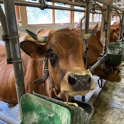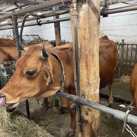 Comprenant un troupeau de 35 vaches laitières, de race Tarine et autant de génisses. Les bêtes pâturent sur 70 hectares de prairie. 8 ouvriers assurent la traite, le soin des animaux et l’entretien des locaux et du matériel.