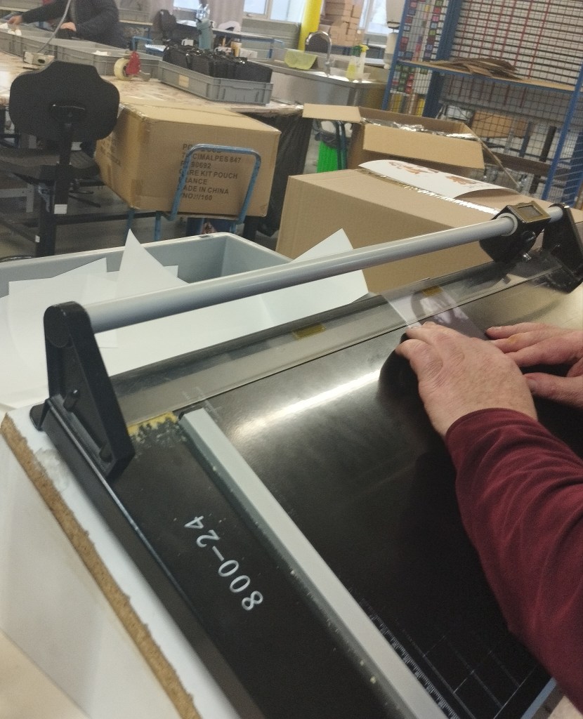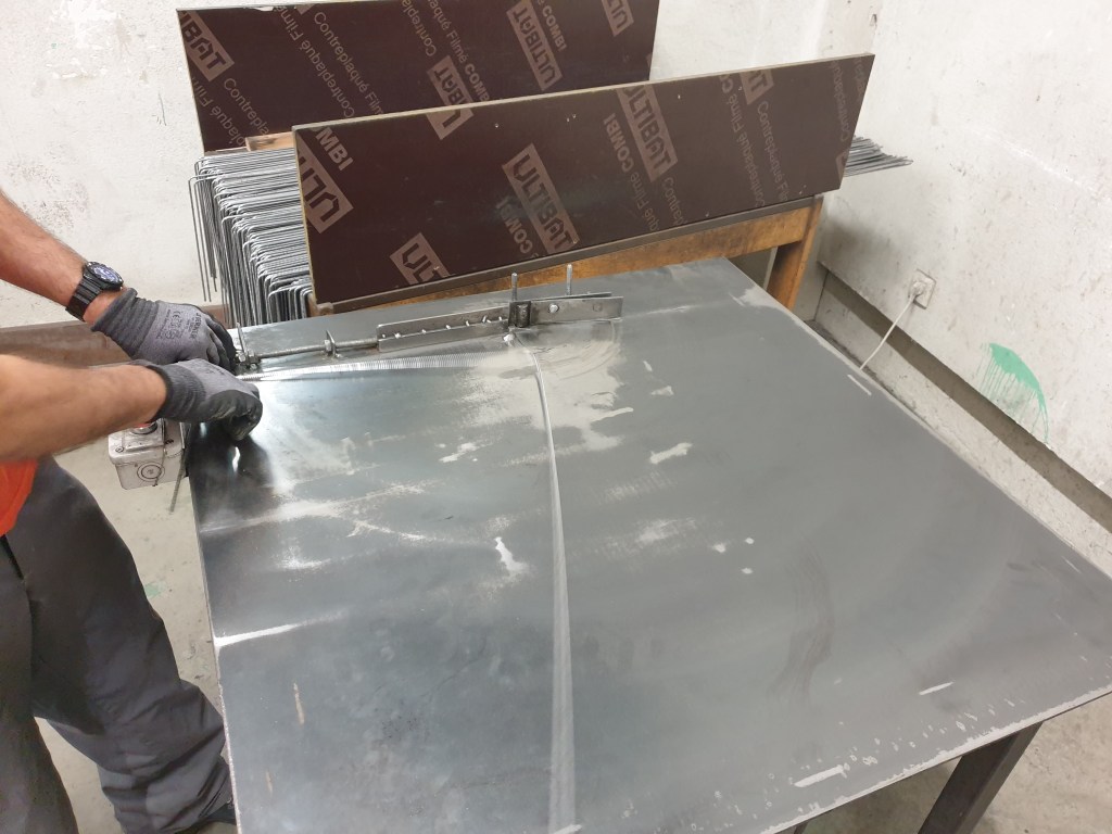 Un des ouvriers de l’atelier prépare une fabrication qui s’appelle des joints pour le client. Ecrit par Ugo