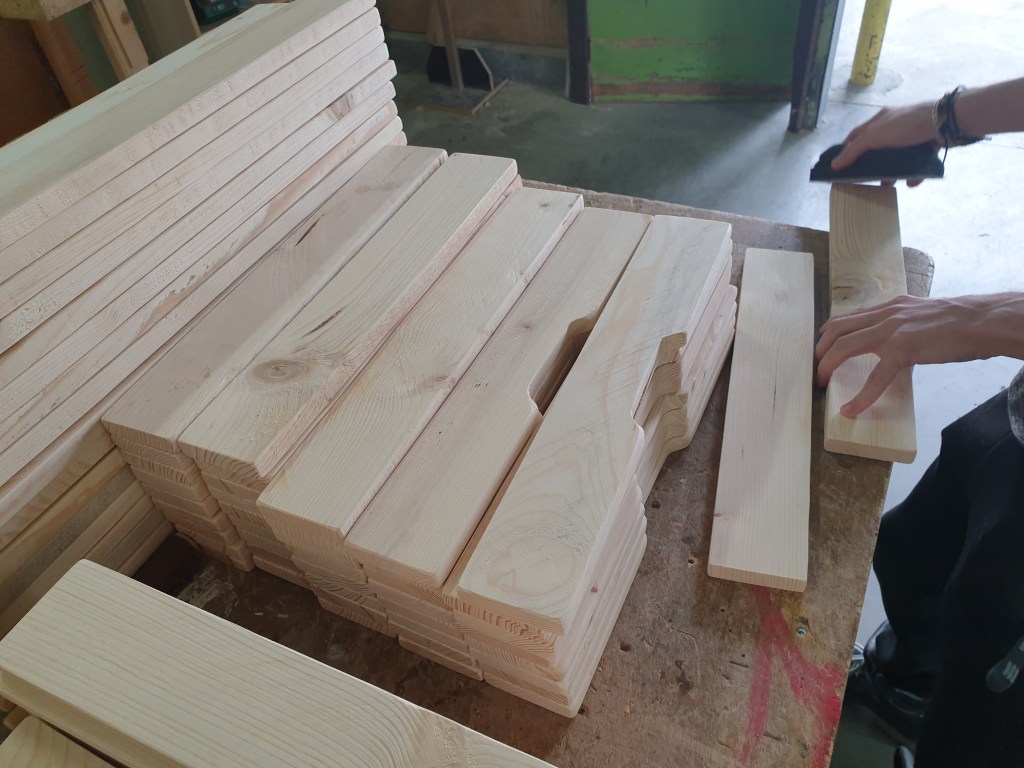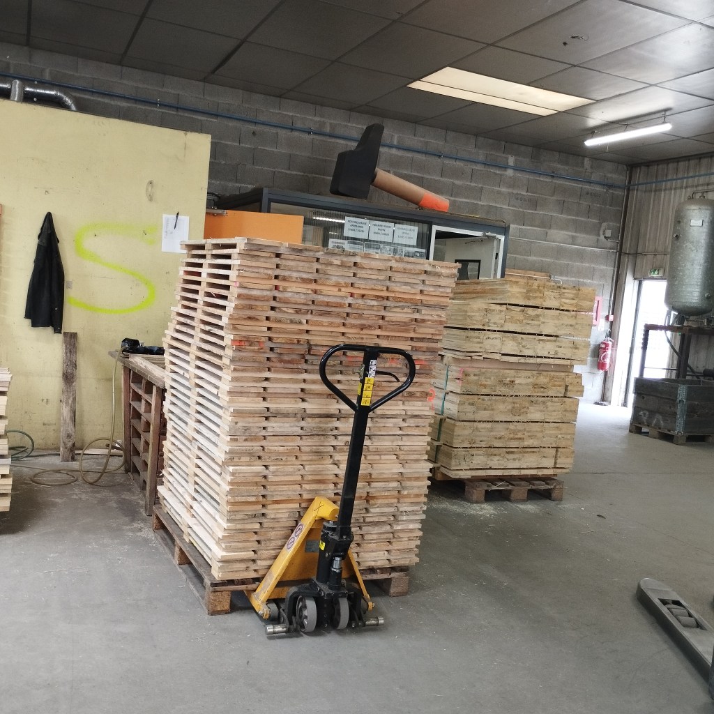 C’est Thomas qui passe les commandes, il y a du bois traité et du bois non traité. Le bois traité sert à faire des palettes pour l’Europe.