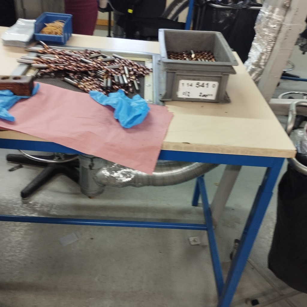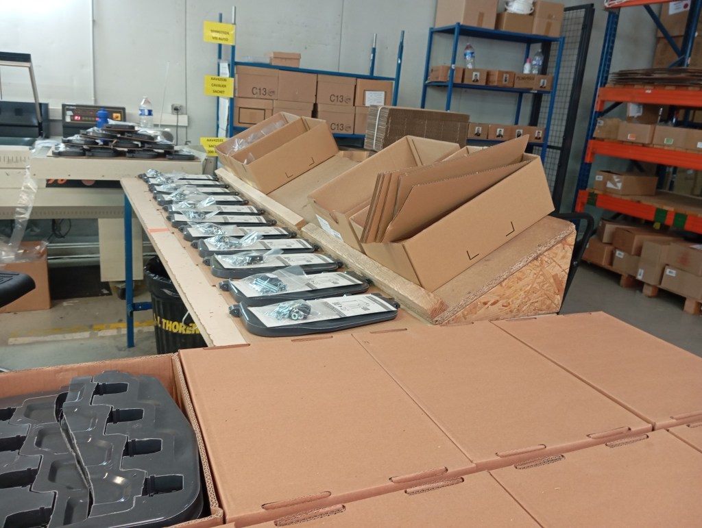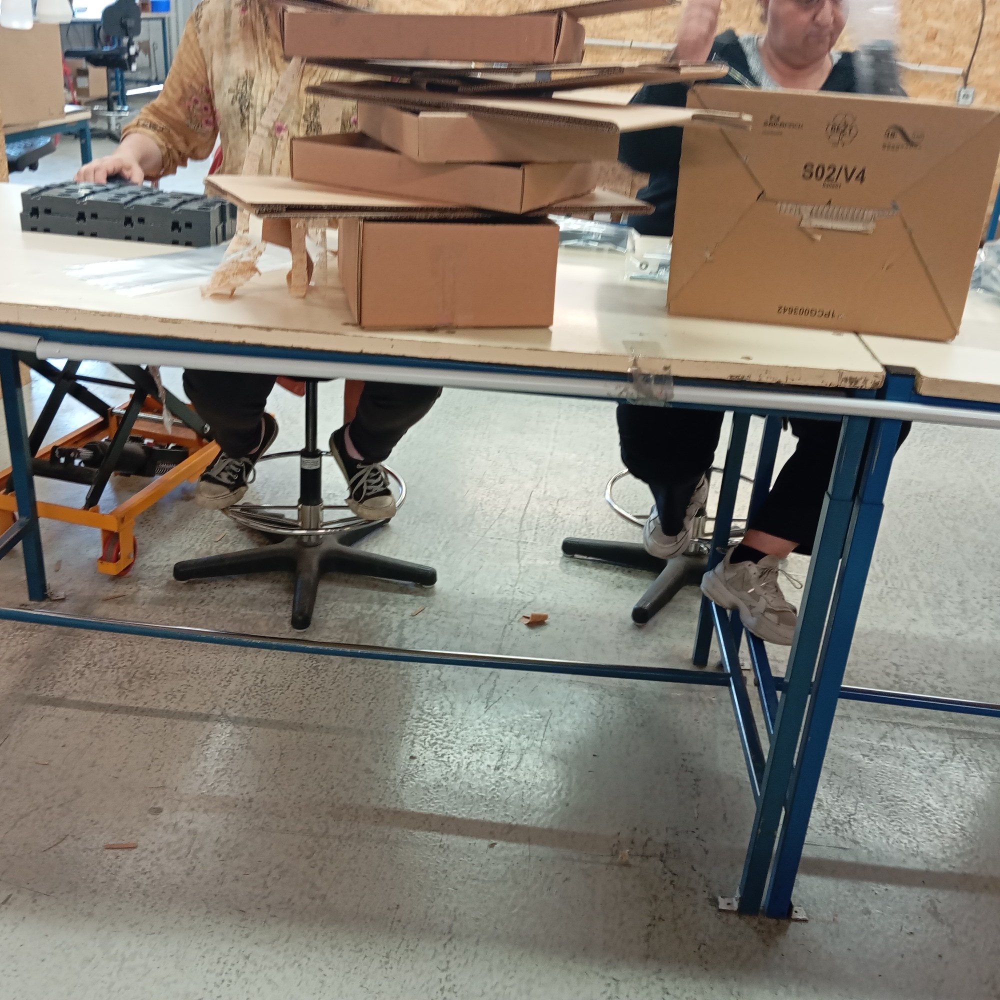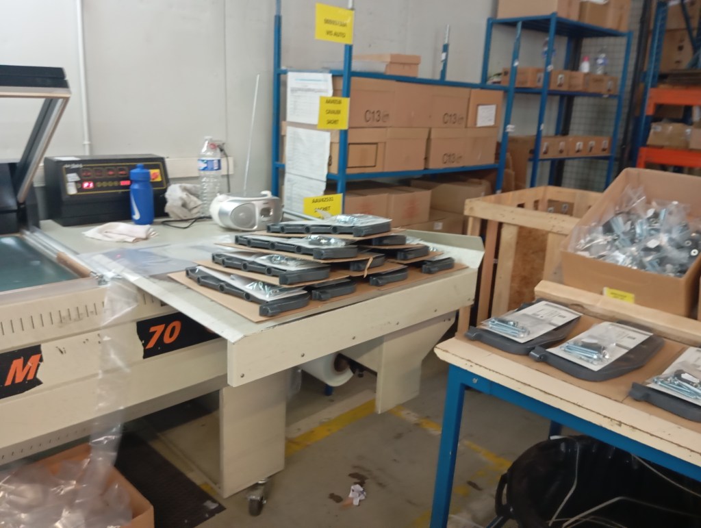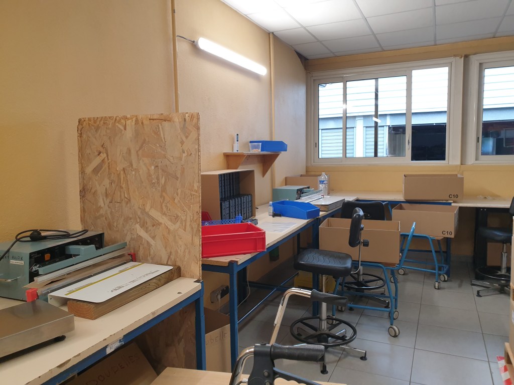Les travailleurs font de la visserie, ils mettent dans les sachets : des vis, des boulons, des écrous cages, des entretoisent, des rondelles. Les sachets sont ensuite soudés puis des étiquettes sont collées, avec la référence. Pour contrôler il y a une balance puis les sachets vont dans un carton. Le carton est posé sur une palette, puis transféré dans un autre atelier, c’est pour faire des coffrets électriques.