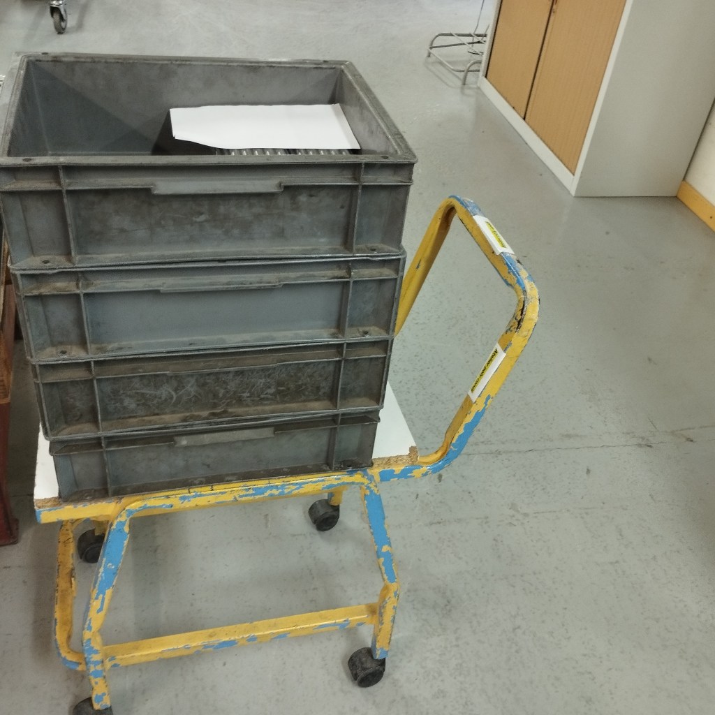 Sur mon atelier, je prépare des cartons de 72 sachets que je soude. Il y a 3 références de cartons et de couleur. Dans les couleurs, il y a vert, blanc, gris, c’est pour des commandes qu’après on doit envoyer dans un autre atelier de l’ESAT. Pour que les autres ouvriers puissent conditionner la marchandise pour partir dans les commandes des composants. Il faut mettre dans les sachets deux grand tubes, deux moyens tubes et deux petits tubes. Ensuite nous avons des tiges filetées et puis différentes pièces. Ecrit par UGO