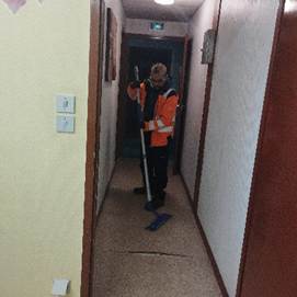 Pour l’entretien de l’ESAT, les travailleurs s’occupent tous les jours des couloirs, des sanitaires et des vestiaires de l’ESAT.