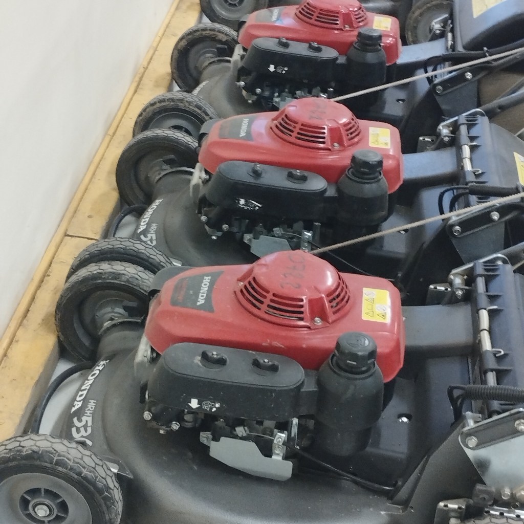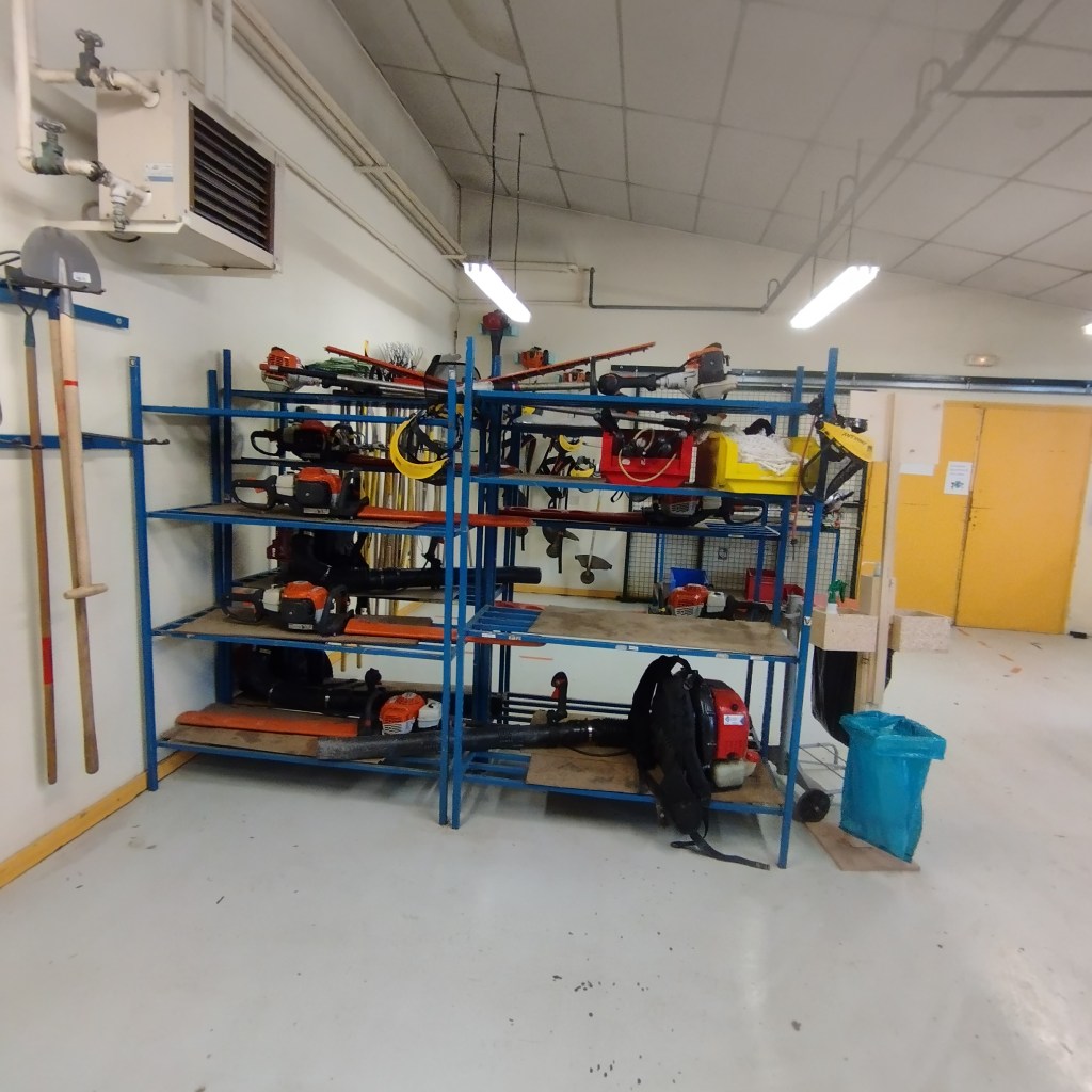 Les ouvriers utilisent des débroussailleuses, il y a des thermiques et des électriques. Il y a aussi des tronçonneuses, des tailles haies, des tondeuses autotractées, des tondeuses autoportées et il y a des souffleurs pour ramasser les feuilles. Ils ont du petit matériel comme des sécateurs.